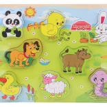 Tato kvalitní dřevěná vkládačka přináší dětem radost z objevování a učení. Barevné dílky s motivy domácích zvířat pomáhají rozvíjet koordinaci oko–ruka a trpělivost, zároveň učí poznávat tvary a zvířátka.