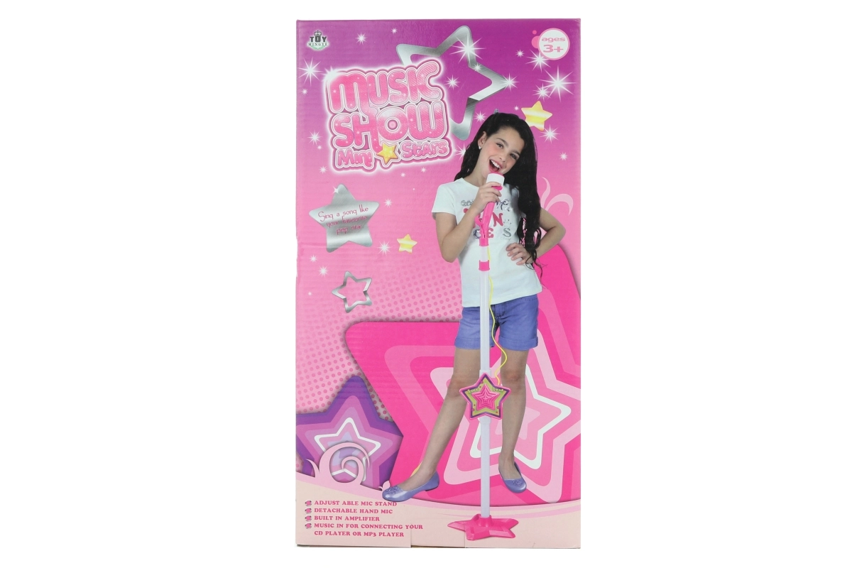 Rozjeďte domácí koncerty s tímto zábavným mikrofonem pro malé zpěvačky. Součástí je stabilní stojan a možnost propojení s MP3 přehrávačem pro přehrávání oblíbených písniček. Napájení zajišťují 3× AA baterie (nejsou součástí balení). Vhodné pro děti od 3 let.