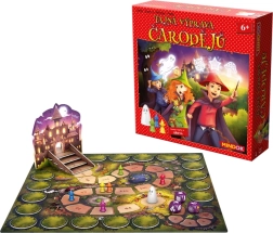 - Bohaté herní komponenty – škola, figurky kouzelníků, žetony stromů a další.