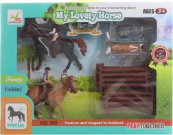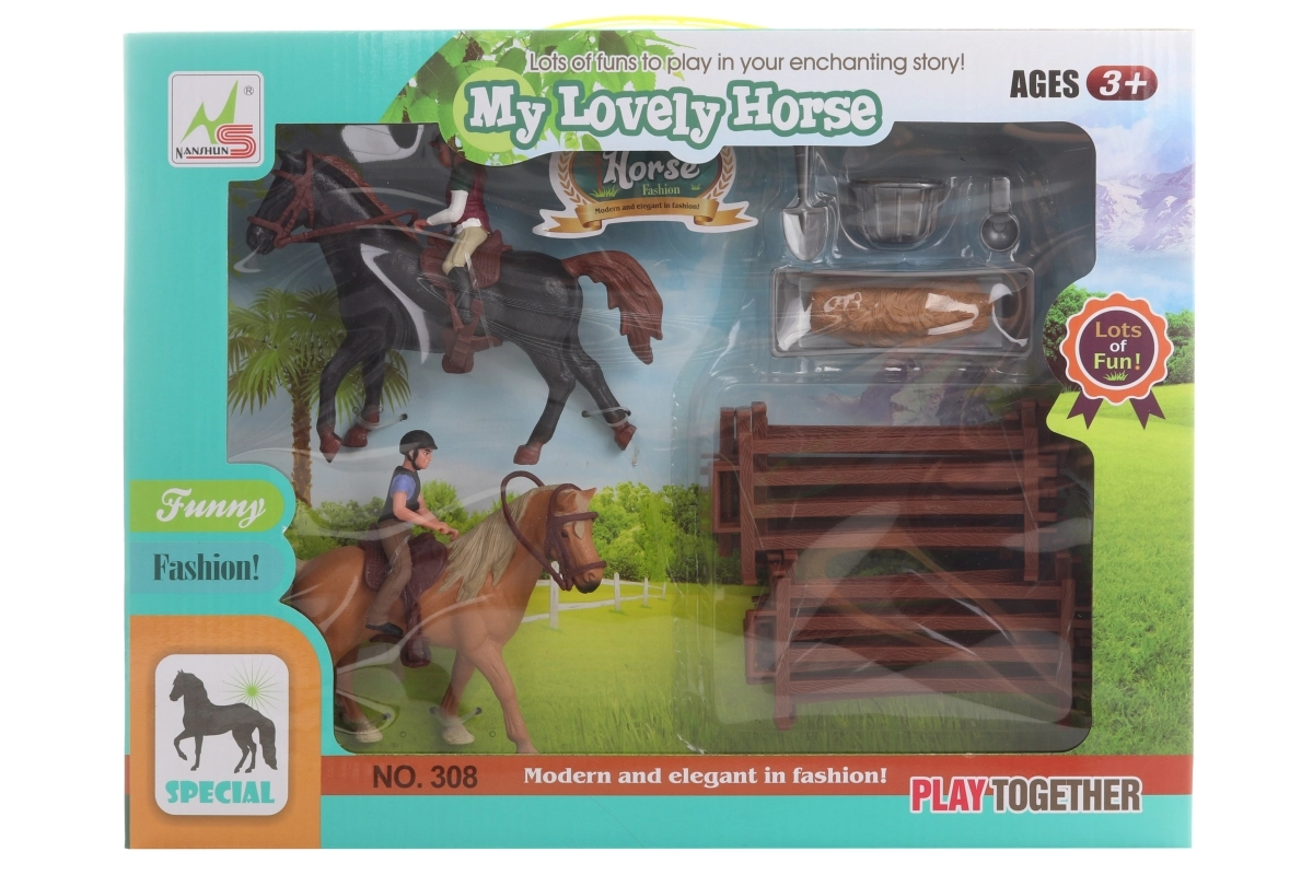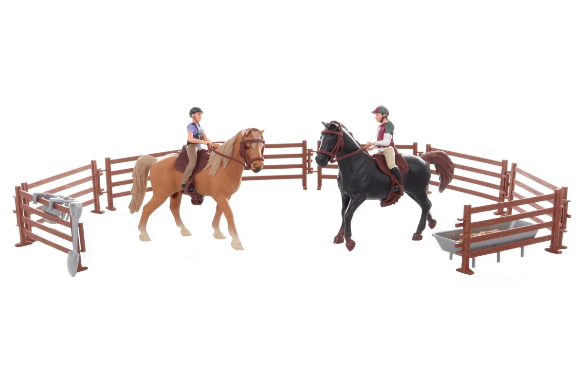 Tato sada koníků s doplňky přináší dětem hodiny kreativní zábavy. Díky dvěma koním a jezdcům mohou děti vytvářet vlastní jezdecké příběhy, závody i péči o zvířata. Součástí je ohrada a další drobné doplňky, které obohatí hru a rozvinou představivost.