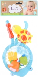 Hračka do vody Žralok přinese vašim dětem hodiny zábavy ve vaně. Set obsahuje síťku v designu žraloka a tři zvířátka, spolu s plovací želvičkou na klíček, které umožní zajímavé hry ve vodě.