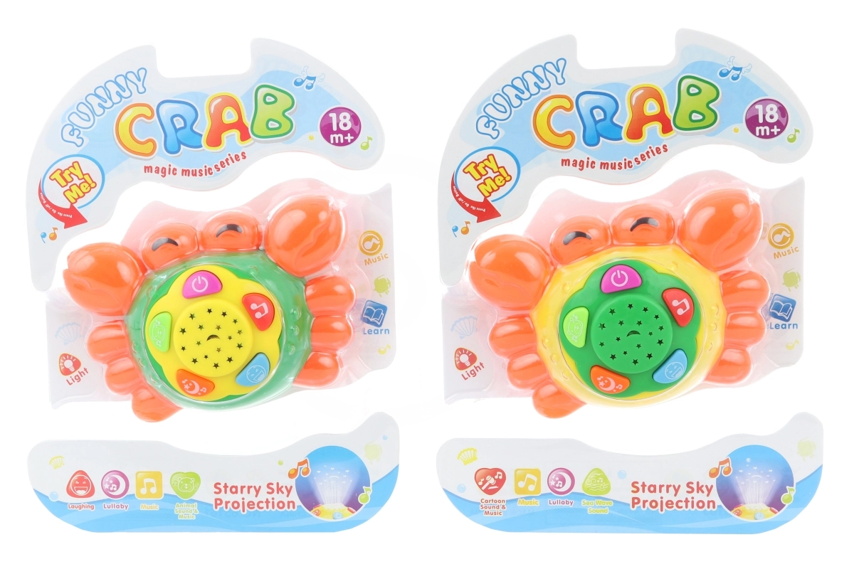 Roztomilý plastový krab potěší malé děti světly a veselými zvuky. Stačí stisknout tlačítka a hračka se rozsvítí a zahraje. Ideální pro první objevování a rozvoj smyslů. Svítí a vydává zvuky, snadné ovládání, bezpečné pro děti od 18 měsíců, baterie součástí balení.