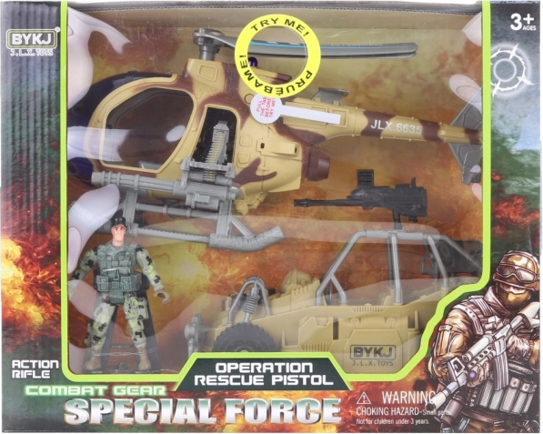 - Kompletní sada: vrtulník, obrněné auto a voják