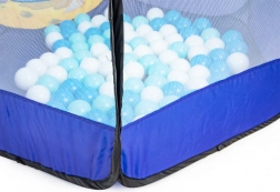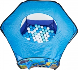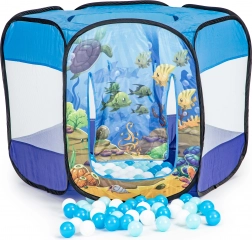 Barevný potisk s motivem oceánu podněcuje představivost a 100 plastových míčků (Ø 6 cm) se postará o hodiny skvělé zábavy. Zpevněná podlaha zvyšuje komfort a odolnost při hraní doma i na zahradě.