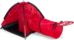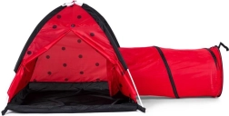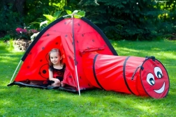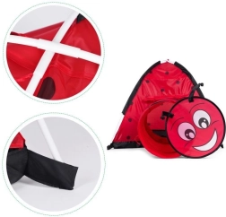 Proměňte pokoj nebo zahradu v místo plné dobrodružství. Dětský stan s motivem berušky láká děti k objevování a tvořivé hře. Iglú konstrukce s jedním vstupem a napojením pro tunel podporuje pohyb, prolézání a schovávání, což rozvíjí motoriku i fantazii. Díky lehkému rámu stan snadno přenesete, takže si ho děti užijí kdekoli.
