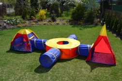 Kombinujte iglu, tipi, kruhové centrum a 4 tunely v libovolném uspořádání. Každý díl lze použít také samostatně – ideální do bytu i na zahradu.