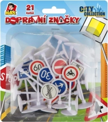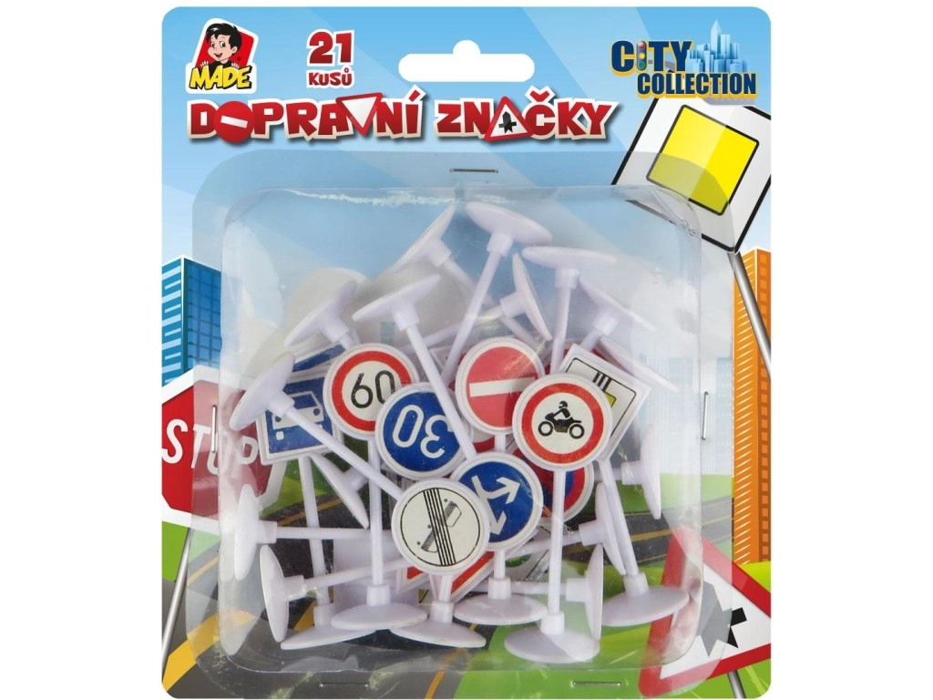 V balení najdete 21 kusů plastových značek z kolekce City Collection, které jsou odolné, lehké a bezpečné pro děti od 3 let. Nevyžadují žádné baterie – zábava začíná hned po otevření.