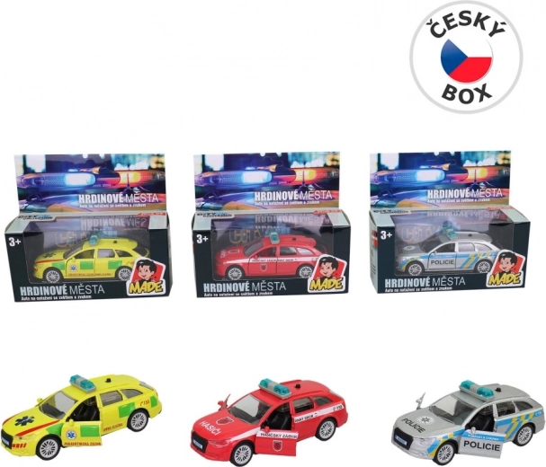 Objevte zábavné autíčko s českými popisky z edice Hrdinové města, které svítí a houká, má realistický vzhled a otevírací dvířka. Díky natahovacímu pohonu se samo rozjede, je vyrobené z kovu a plastu a baterie jsou součástí balení.