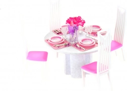 Stylový jídelní set pro panenky Glorie promění každé dětské hraní v realistickou hostinu. Obsahuje kulatý stůl, 4 židle a 4 kompletní sady jídelního servisu. Ideální pro kreativní hru a rozvoj fantazie dětí od 3 let.