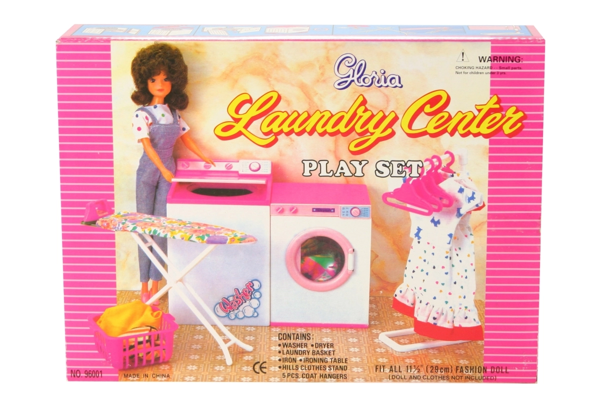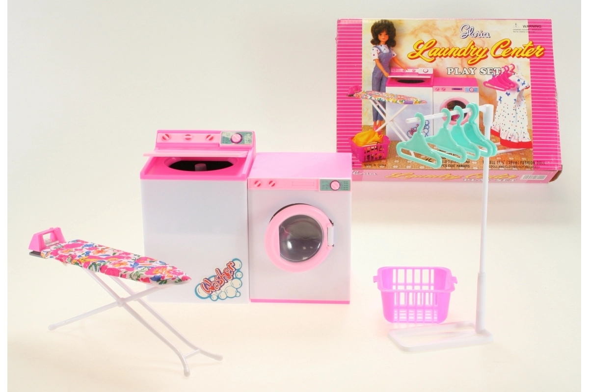 Zábavná a detailní prádelní sada pro panenky GLORIE přináší vše potřebné pro hraní na domácnost: pračka a sušička s otevíracími víky, žehlicí prkno s žehličkou, stojan s ramínky a košík na prádlo. Ideální pro děti od 3 let.