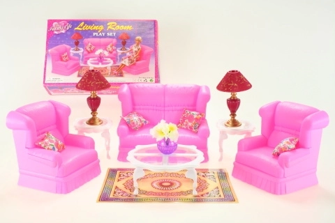 • Kompletní set pro vybavení obývacího pokoje panenek