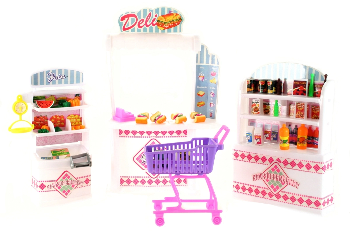 Součástí balení jsou také sendviče se surovinami, které lze od sebe oddělit a znovu skládat, plastový nákupní košík a široký výběr potravin: ovoce, zelenina, konzervy, lahve, mléko, krabice a další. Set je kompatibilní s většinou panenek běžné velikosti (panenky nejsou součástí).