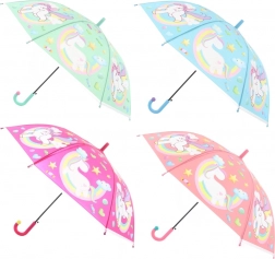 Užijte si pohodlí a hravý styl s tímto deštníkem s jednorožci. Díky vystřelovacímu mechanismu se snadno a rychle otevře, takže budete v suchu během okamžiku. Lehká konstrukce je ideální na cesty i do školy.
