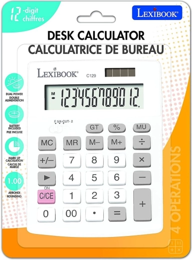 Lexibook kapesní kalkulačka je ideální volbou pro studenty, domácnost i kancelář. Díky přehlednému 12místnému displeji a kombinaci solárního panelu s přibalenou baterií LR54 máte jistotu spolehlivého chodu i při slabším světle. Jednoduchý, funkční design v bílé barvě se šedými a bílými tlačítky, navíc se zvýrazněným mazacím tlačítkem, podporuje rychlou orientaci.