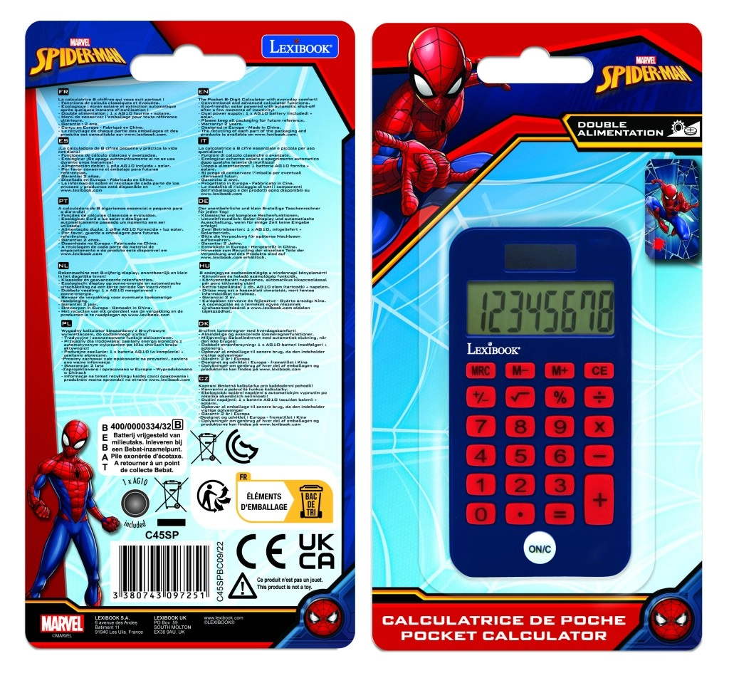 Dopřejte dětem praktickou a zábavnou školní pomůcku s oblíbeným hrdinou SPIDER-MAN. Tato lehká a malá kalkulačka je ideální na cesty i do školy – snadno se vejde do penálu či kapsy a ochranný kryt brání poškození displeje i kláves.