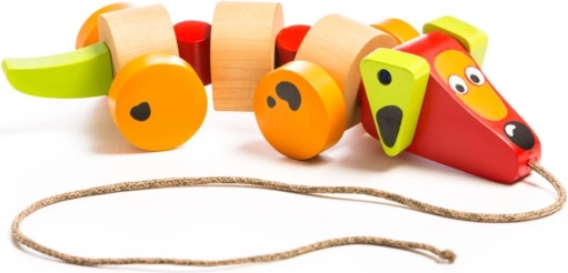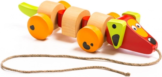 Díky kolečkům a provázku je hračka snadno ovladatelná a děti ji mohou tahat s sebou, kamkoli se vydají.