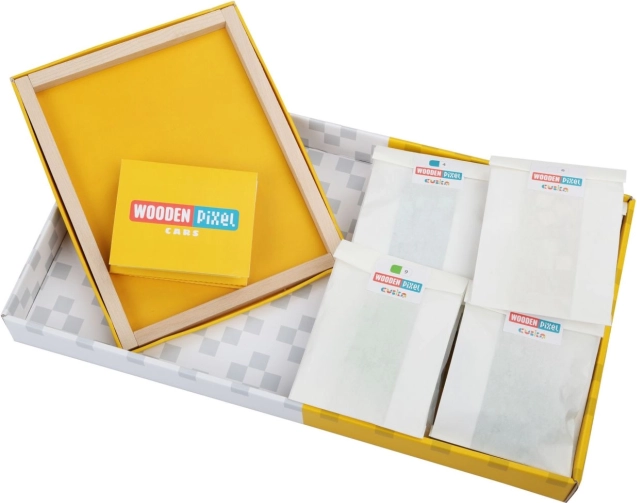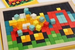 Drobné dřevěné kostky 1 × 1 cm umožní dětem skládat detailní mozaiky a rozvíjet přesnost i trpělivost.