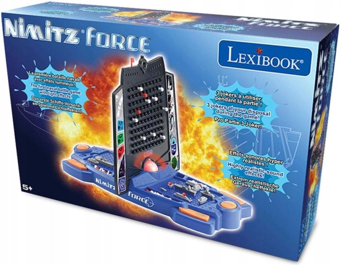 Elektronická hra Nimitz Force přináší oblíbenou námořní bitvu v dynamickém, zvukovém a světelném provedení. Rozmístěte svou flotilu na mřížce, hlaste souřadnice a pomocí interaktivních tlačítek oznamujte střelbu i zásahy. Díky červeným a bílým kolíčkům budete mít vždy přehled o průběhu bitvy – nahoře označíte vlastní zásahy, dole zásahy soupeře.