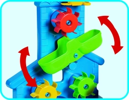 Intuitivní pohyblivé šoupátko pod násypkou umožní dětem regulovat velikost otvoru a tím i intenzitu proudu. Hračka je vyrobena v Itálii z kvalitních plastů s důrazem na bezpečnost pro nejmenší.