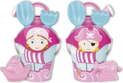 - Kompletní výbava: kyblík, konvička 0,5 l, sítko, lopatka, hrabičky a pirátské tvořítko.