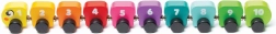 Deset dílků očíslovaných 1–10 tvoří plynulou duhovou škálu. Děti si upevňují pořadí čísel i rozlišování barev přirozenou hrou.