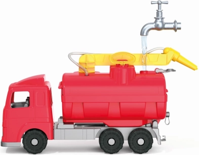 Model je vybaven ruční pumpou a funkční stříkačkou, která umožňuje simulaci skutečné hasičské operace.
