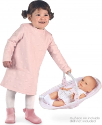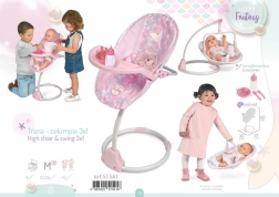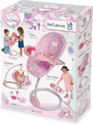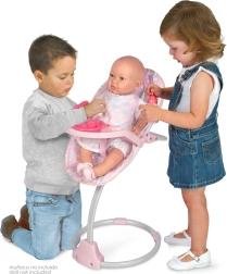 DeCuevas 51541 Multifunkční jídelní židlička a houpačka pro panenky 3 v 1 Ocean Fantasy 2021, z překrásné světle růžové kolekce s malou mořskou vílou, je novinkou tohoto roku. Tato designová moderní židlička rozhodně není jen ideálním pomocníkem při krmení panenky, ale slouží i jako houpačku nebo nosítko. Asi většina holčiček bude toužit nakrmit své miminko, pak ho houpavým pohybem ukonejšit ke spánku a na konec ho v nosítku přenést kam bude chtít.