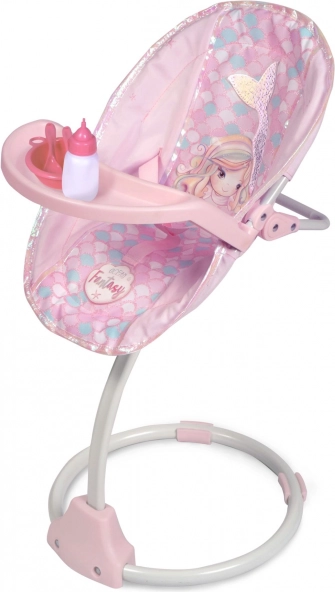 •Odnímatelné oboustranné sedátko-lehátko s malou mořskou vílou a s bezpečnostními popruhy pro uchycení panenky, které může být díky dvěma různým způsobům připevnění na moderní konstrukci využito jako jídelní židlička nebo houpačka, ale i samostatně jako nosítko.
