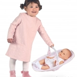 DeCuevas 51541 Multifunkční jídelní židlička a houpačka pro panenky 3 v 1 Ocean Fantasy 2021, z překrásné světle růžové kolekce s malou mořskou vílou, je novinkou tohoto roku. Tato designová moderní židlička rozhodně není jen ideálním pomocníkem při krmení panenky, ale slouží i jako houpačku nebo nosítko. Asi většina holčiček bude toužit nakrmit své miminko, pak ho houpavým pohybem ukonejšit ke spánku a na konec ho v nosítku přenést kam bude chtít.
