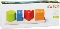 - Dřevěná obdélníková základna, 16 barevných geometrických tvarů