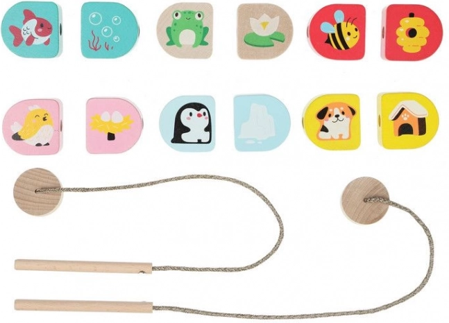 Děti při navlékání spojují zvířátka s prostředím, kde žijí, a rozvíjejí logické uvažování i slovní zásobu. Ideální pro hravé učení každý den.