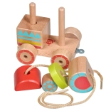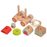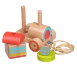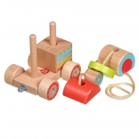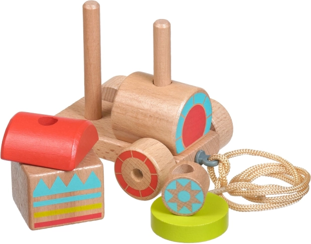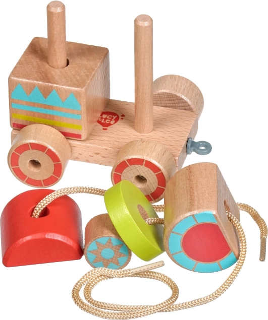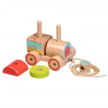 Dřevěná tahací mašinka kombinuje klasický vzhled a moderní vzdělávací prvky. Děti skládají barevné díly na správná místa, trénují úchop a objevují základní tvary a barvy. Po složení mohou mašinku pomocí provázku jednoduše táhnout a rozvíjet tak koordinaci chůze.