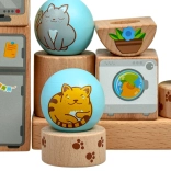 - Pevné dřevěné díly s veselými ilustracemi koček a domácnosti