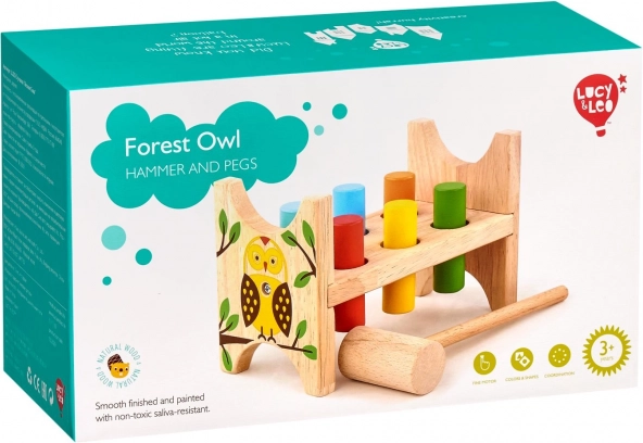 Tato kvalitní dřevěná zatloukačka s motivem lesní sovy je ideální hračkou pro děti, které milují aktivní a smysluplnou zábavu. Šest barevných kolíků a dřevěné kladívko pomáhají dětem trénovat přesnost úderu, sílu a rytmus.