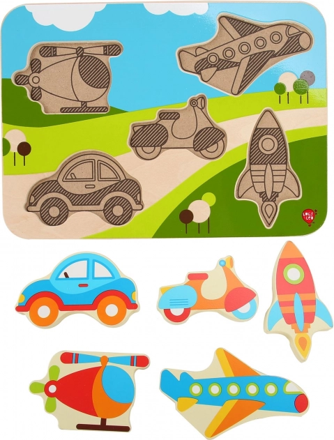Objevte zábavné dřevěné puzzle s motivem vozidel, které rozvíjí jemnou motoriku, koordinaci oko–ruka a rozpoznávání tvarů. Velké, barevné dílky se dětem dobře drží a snadno se vkládají do správných výřezů. Ideální volba pro první puzzle pro malé nadšence do aut, letadel a dalších dopravních prostředků.