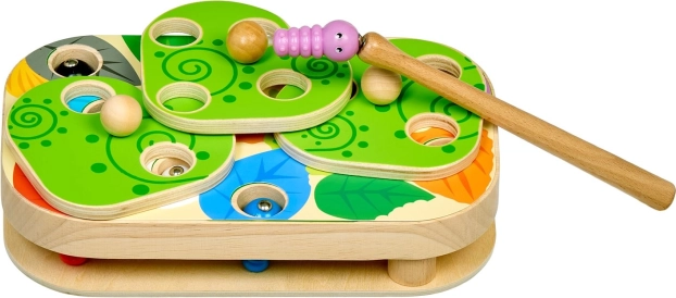 Bezpečná magnetická hůlka pomáhá dětem chytat barevné housenky do otvorů. Rozvíjí jemnou motoriku, koordinaci a trpělivost.