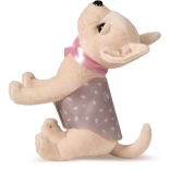 Pejsek má obleček na suchý zip a ozdobnou stuhu pod krčkem, což přidává na celkové atraktivnosti. Je vhodný pro děti od 3 let. Materiály použité při výrobě zahrnují plyš, textil a plast, a díky tomu je hračka nejen příjemná na dotek, ale také snadno pratelná na 30°C.