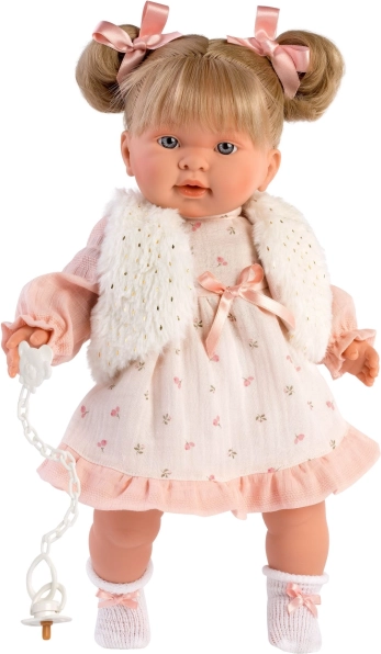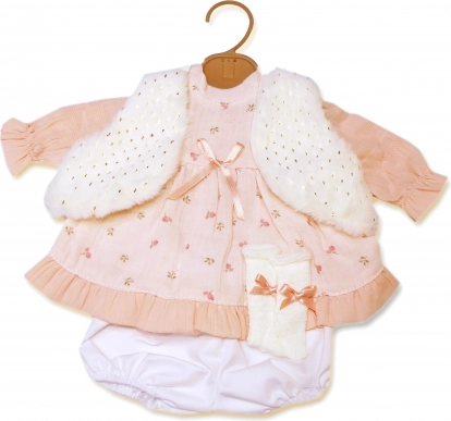 Stylový 4dílný obleček pro panenku 42 cm od značky LLORENS potěší jemnými růžovými šaty, měkoučkou vestičkou a kalhotkami na ramínku. Vyrobeno ve Španělsku, ideální pro každodenní hraní i slavnostní chvíle. Vhodné od 3 let.