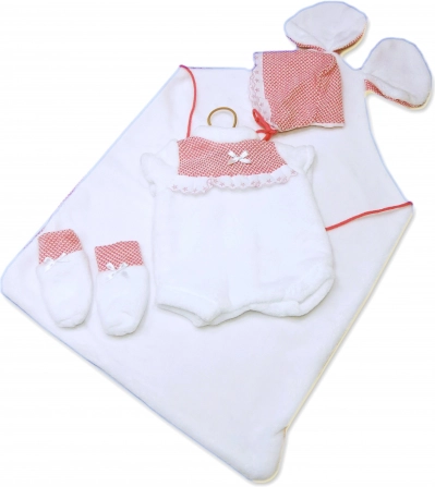 Součástí je 3dílný set a dekorativní podložka s oušky pro ještě větší porci zábavy při péči o panenku. Baleno v igelitovém obalu s plastovým nebo kartonovým ramínkem – snadné skladování i darování.