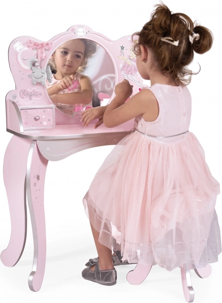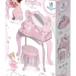 Nabízí dva šuplíčky pro uložení doplňků a zrcadlo, což usnadňuje hru na oblékání.