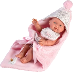 Tento dvoudílný obleček je navržen speciálně pro panenku miminko New Born o velikosti 26 cm. Obsahuje oboustrannou dečku s kapucí, která chrání panenku a dodává jí vzhled skutečného miminka.