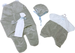 Tento půvabný obleček je perfektní volbou pro všechny malé maminky, které chtějí oblékat své panenky stylově a pohodlně. Obsahuje sametovou rychlozavinovačku, která poskytuje komfort a teplo pro panenku, zejména při cestování v autosedačce. Součástí je i ozdobný kapesníček, který dotváří celý vzhled.