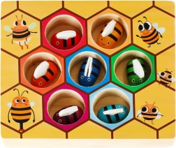 Edukační hra Včelí plástev Montessori je krásně zpracovaná dřevěná hra, kterou si zamilují nejmenší. Pomocí barevných včelek si děti zábavnou formou procvičí koordinační schopnosti a jemnou motoriku.