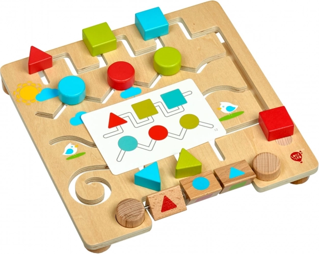 Dřevěné bludiště s geometrickými tvary LUCY & LEO je zábavná a vzdělávací hračka, která dětem pomáhá učit se tvary a barvy přirozenou cestou. Hladká herní deska s klikatými dráhami vede barevné dílky tak, aby odpovídaly tvarům na otočných blocích nebo zadaným vzorům na kartách. Díky robustnímu dřevu a bezpečnému zpracování je hračka vhodná pro každodenní hraní.