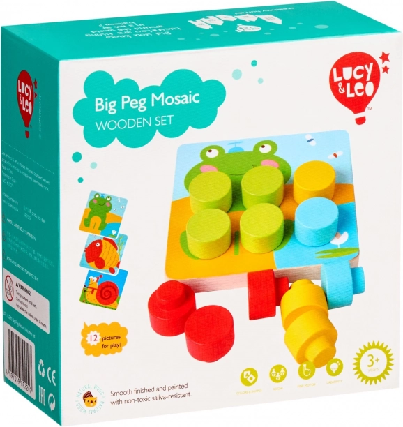 Objevte kreativní hru pro děti od 3 let – barevnou mozaiku s velkými kolíky od LUCY & LEO, která rozvíjí jemnou motoriku, poznávání barev a tvořivé myšlení. Set obsahuje dřevěný podstavec s otvory, 14 velkých dřevěných kolíků a 12 oboustranných předloh s veselými motivy pro nekonečné skládání. Bezpečné provedení a odolné materiály zaručují dlouhou životnost a zábavu.