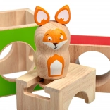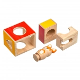 Hra plynule rozvíjí jemnou motoriku, koordinaci oko–ruka a slovní zásobu – zejména chápání předložek a příslovcí (např. v, na, před, za). Díky pevnému dřevu s hladkou úpravou a netoxickými barvami je hraní bezpečné a příjemné.