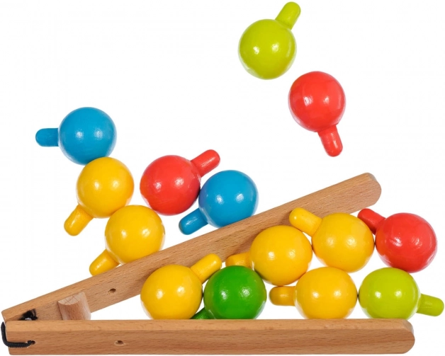 Po hře kolíčky snadno uložíte do lněného sáčku. Přírodní dřevo a odolné barvy zaručí dlouhou životnost hračky.