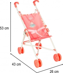 Skládací design - Kočárek lze snadno složit do kompaktních rozměrů, což usnadňuje jeho přenášení a skladování. Roztomilý motiv na sedadle a bezpečnostní pás dodávají hře na autenticitě. Kočárek nejen přináší radost, ale také rozvíjí představivost, empatii a sociální dovednosti dítěte.