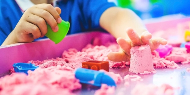 Kinetický písek má pozitivní vliv na smyslovou integraci dítěte a také dokonale rozvíjí zručnost.