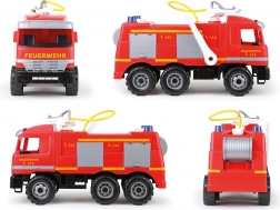 Hasičské auto od LENA nabízí malým hasičům spoustu zábavy a možností hry. Tento model disponuje bočním úložným prostorem a 1,5litrovou nádržkou na vodu, což zvyšuje reálný zážitek z jejich hry. Vyrobeno z kvalitních materiálů, splňuje evropské normy a má osvědčení CE.